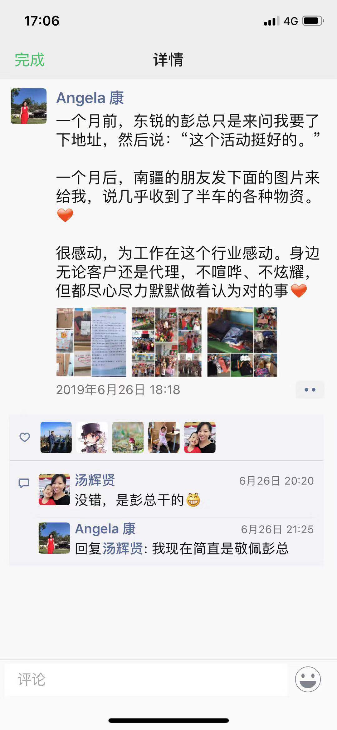 在我加入東銳的1年時(shí)間里,因崗位職責(zé)做了無(wú)數(shù)次東銳公益活動(dòng)的推送。我為自己是東銳人,而我的公司有這樣的社會(huì)責(zé)任感而驕傲。但是沒(méi)有一次推送讓我像今天這樣雀躍,我再次感受到這個(gè)社會(huì)無(wú)限的善意。