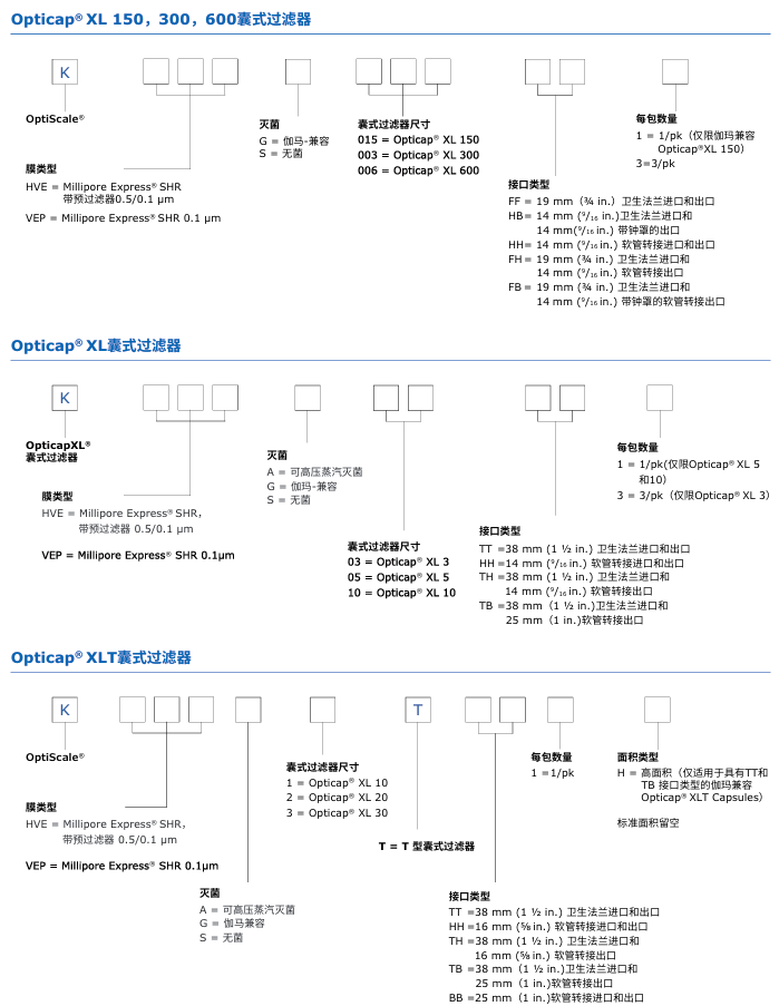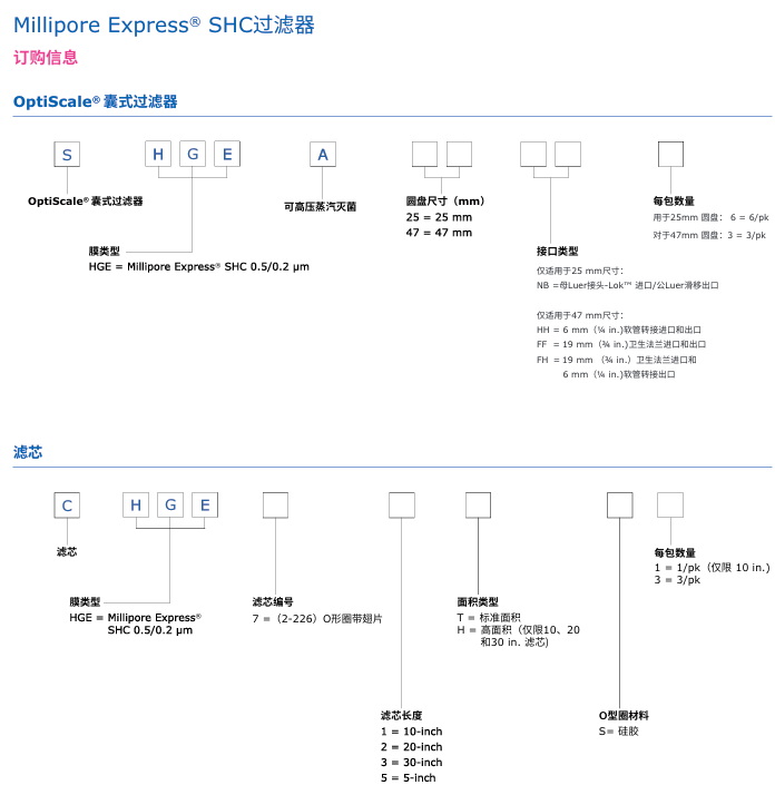 Millipore Express® 過濾器系列具有以下幾種過濾器: