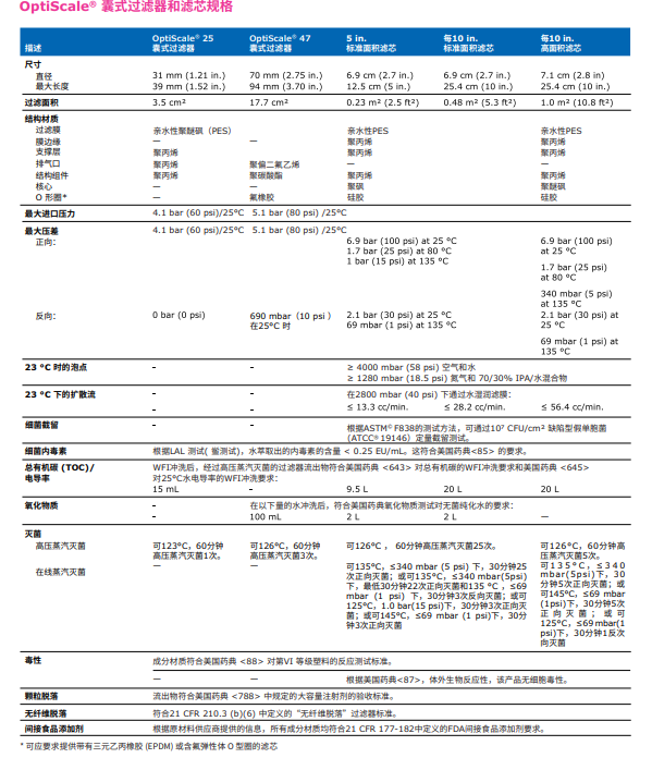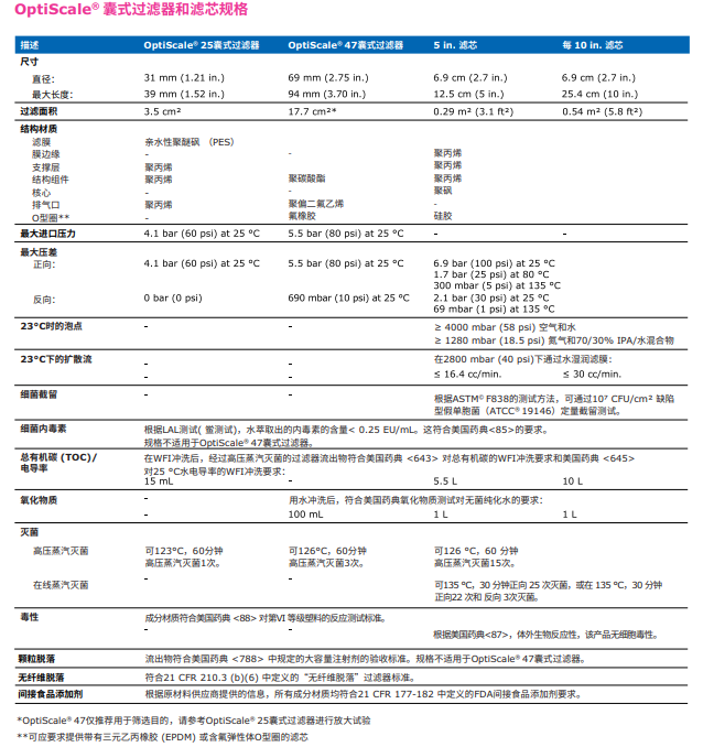 Millipore Express® SHC 過濾器技術(shù)參數(shù):