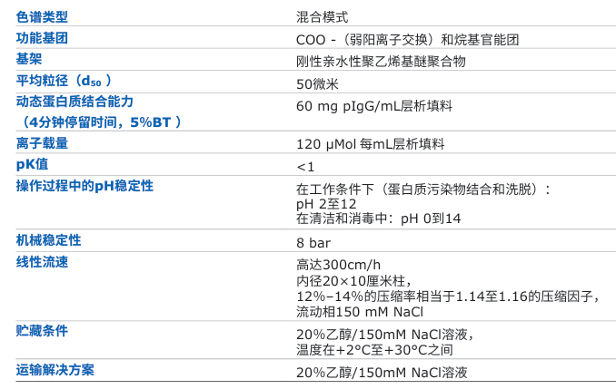 Eshmuno® CMX 層析填料:高選擇性混合模式層析填料,用于難以 純化的mAb,ADC和融合蛋白。Eshmuno® CMX將弱陽(yáng)離子交換性 能與疏水相互作用結(jié)合在一起,為單克隆 抗 體( mAb),融合蛋白和ADC藥物的純 化以及低分子量雜質(zhì)和宿主細(xì)胞蛋白 (HCP)的分離提供了高選擇性。
