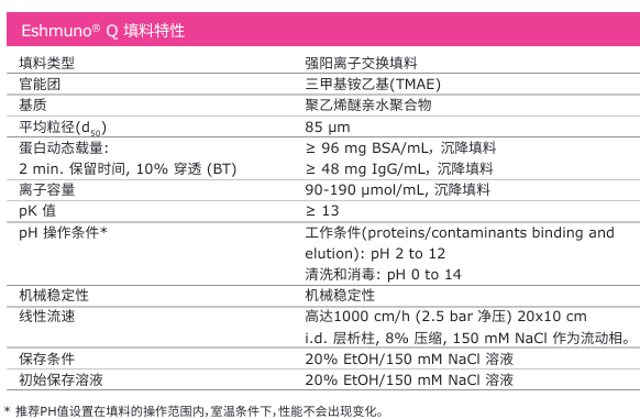 Eshmuno® A 層析填料:剛性、高載量、耐酸 堿的蛋白A親和層析填料,用于含F(xiàn)c 的蛋白質(zhì)的純化。Eshmuno® A 填料可在酸性和/ 或堿性條件下清 洗、消毒,并保持高流速下的高動(dòng)態(tài)載量。此外,它 還提供了從蛋白A柱的洗脫峰的前端和尾端去除 聚集體的有效解決方案。Eshmuno® A填料的這一 性能,減少了含F(xiàn)c蛋白質(zhì)純化工藝中層析之后步驟 的負(fù)擔(dān)。