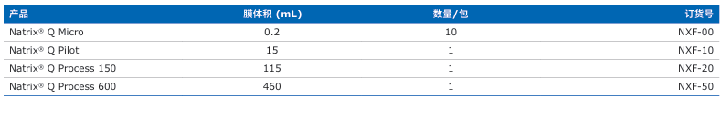 Natrix® 膜層析是一種高載量、高通量的強(qiáng)陰離子交換層析,專為純化生 物分子而設(shè)計(jì)。它結(jié)合了高性能填料的載量和膜層析卓越的流動特性。 Natrix® 膜層析平臺可以實(shí)現(xiàn)從0.2 mL裝置到生產(chǎn)規(guī)模的線性放大,并 為任何生物工藝提供生產(chǎn)力、靈活性和工藝穩(wěn)健性。