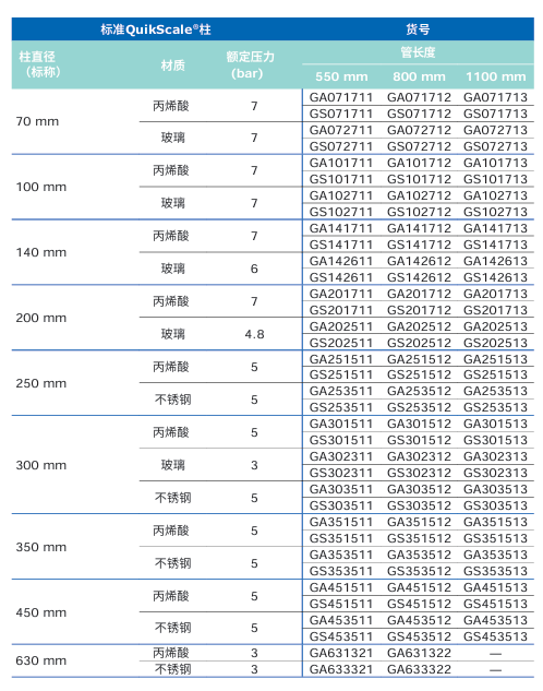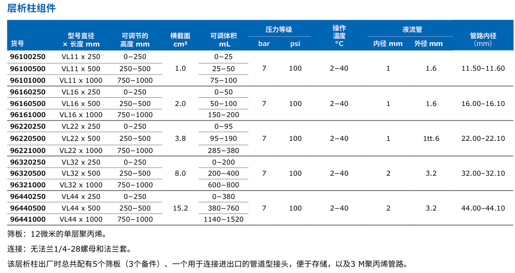 Vantage® A2 工業(yè)色譜柱技術參數(shù):