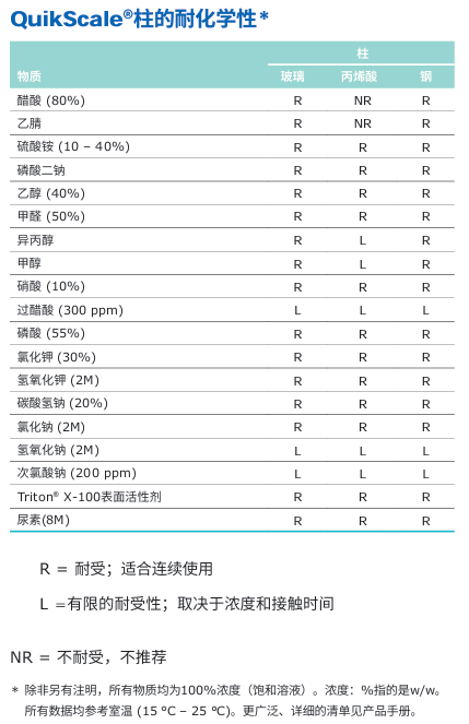為實現(xiàn)超高通量而設計的QuikScale®柱穩(wěn)健可靠,易于均勻裝柱,從而在各 種各樣的層析應用中提供最佳分辨率,適用于所有介質(zhì)類型。創(chuàng)新的流量分 配器保證了充分、均勻利用柱內(nèi)介質(zhì),保證了分離過程可靠、可再現(xiàn)。使用高 流量選項,操作壓力達7bar,可實現(xiàn)高達1000cm/hr的流速,從而在使用具 有高流量和/或背壓要求的介質(zhì)時允許更高的床層高度,能夠獲得更大的工 藝設計靈活性。??煞糯蟮腝uikScale®層析柱系列比當前大多數(shù)制藥工藝使用的層析柱更快的線速度,提供更高的產(chǎn)品純度。