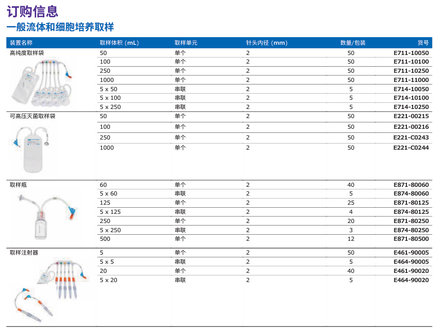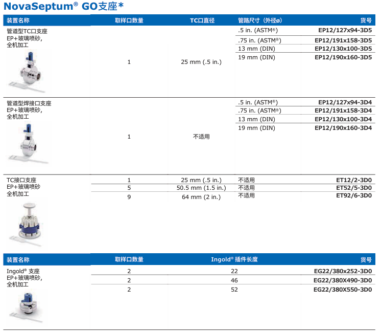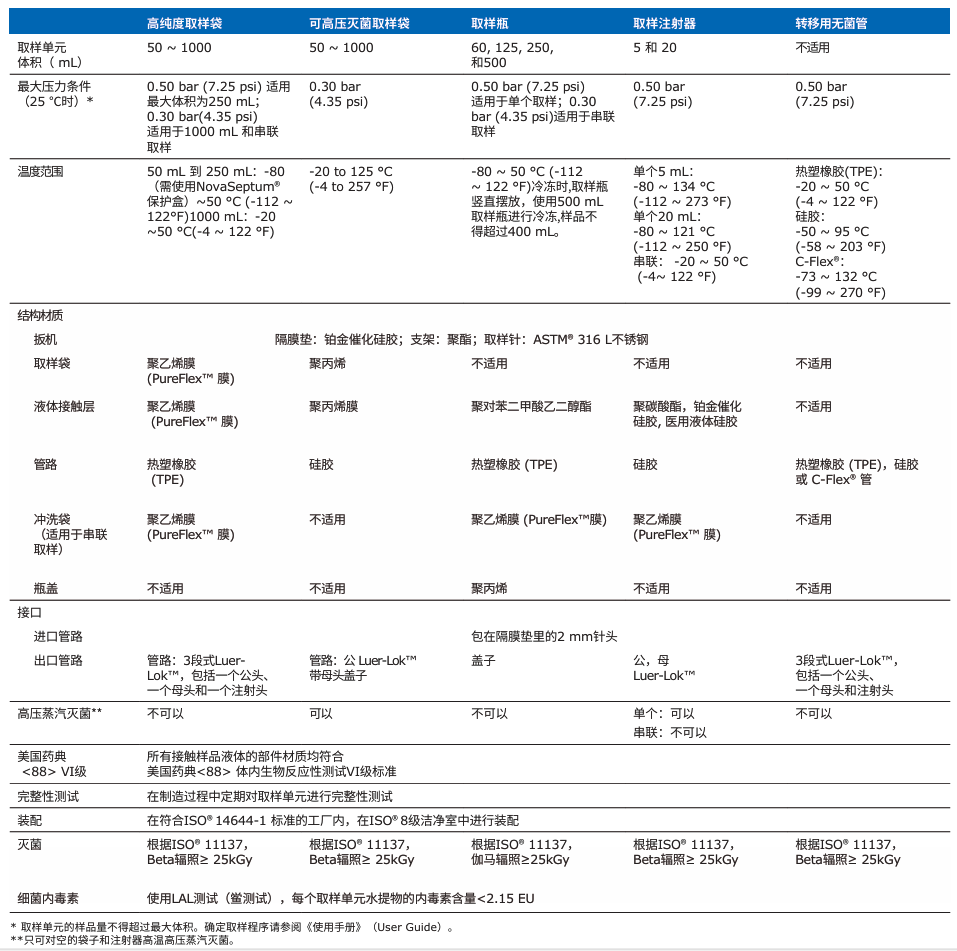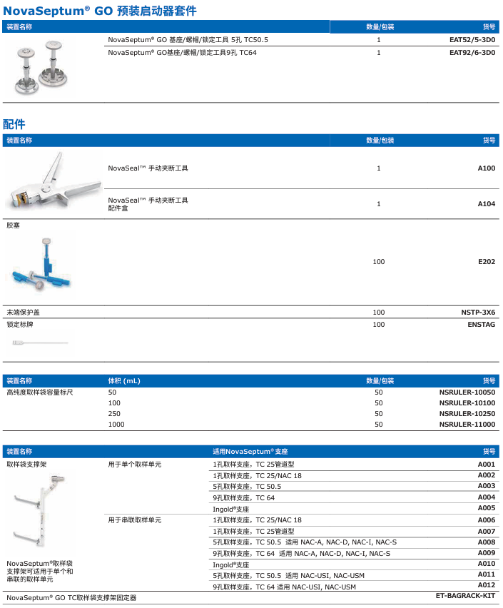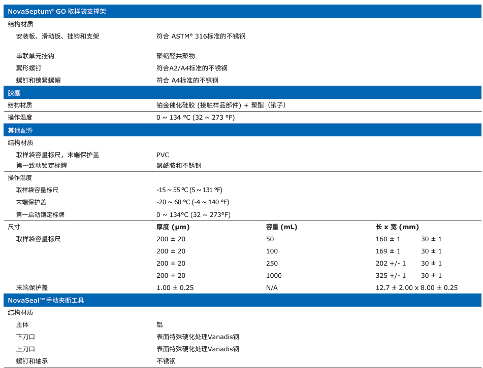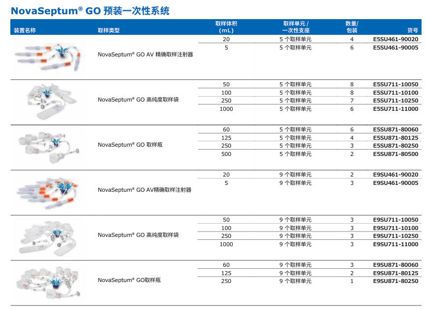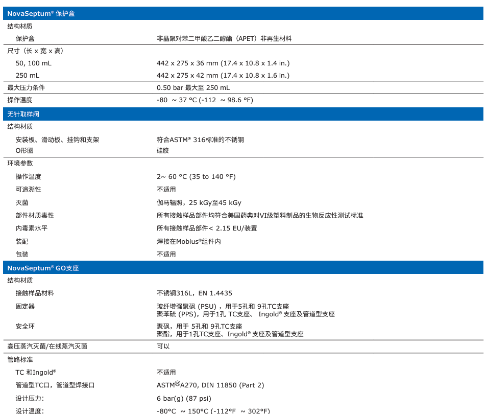 NovaSeptum® GO無(wú)菌取樣單元參數(shù)列表: