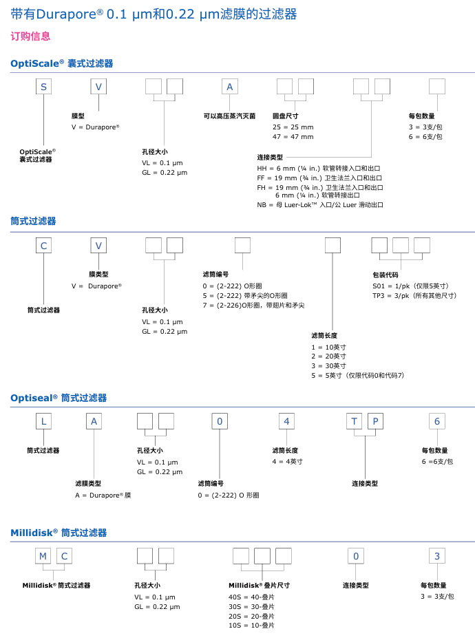 Durapore 0.1μm和0.2μm濾膜的技術(shù)參數(shù):