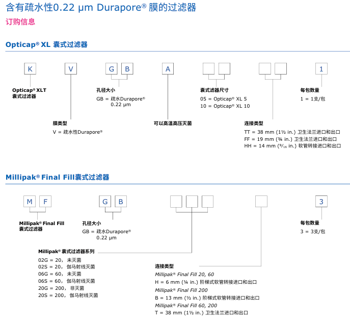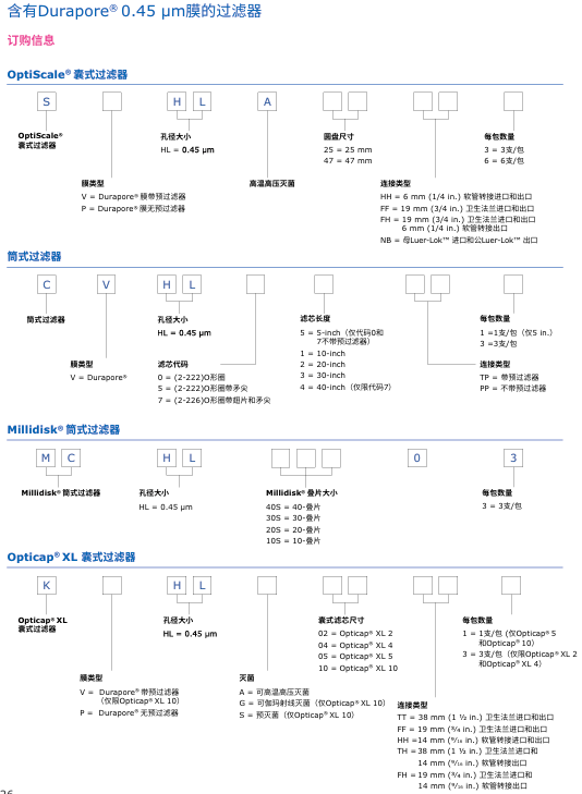 Durapore® 0.45 μm濾膜 生物負(fù)荷減少和顆粒去除過濾 器,可帶或不帶集成的0.5μm Milligard® 預(yù)過濾器。