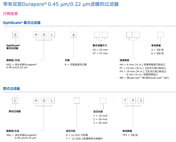 帶有雙層0.45 µm/0.22 µm Durapore® 濾膜的技術(shù)參數(shù):