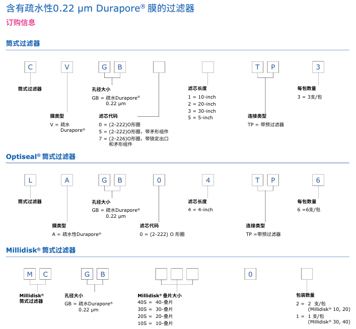含有疏水性0.22 µm Durapore® 膜的技術(shù)參數(shù):