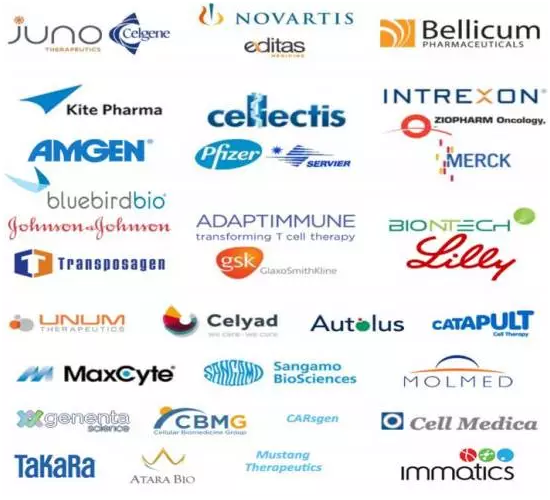 圖1. 國(guó)外參與免疫細(xì)胞治療(CAR-T、TCR-T)的部分公司