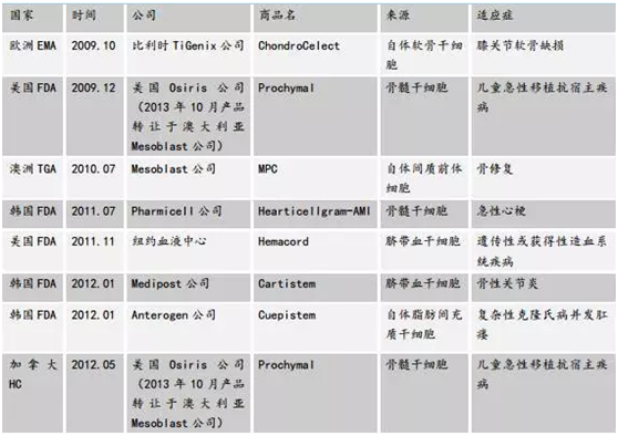 表2. 國(guó)內(nèi)外已獲批的干細(xì)胞產(chǎn)品
