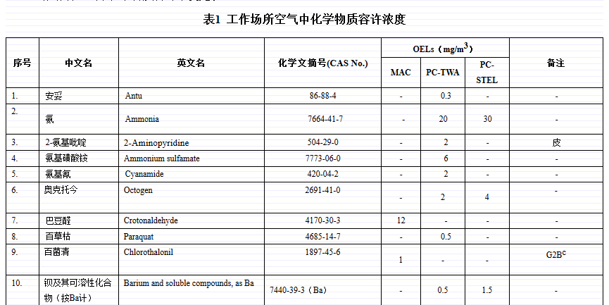 國(guó)標(biāo)《工作場(chǎng)所有害因素職業(yè)接觸限值》