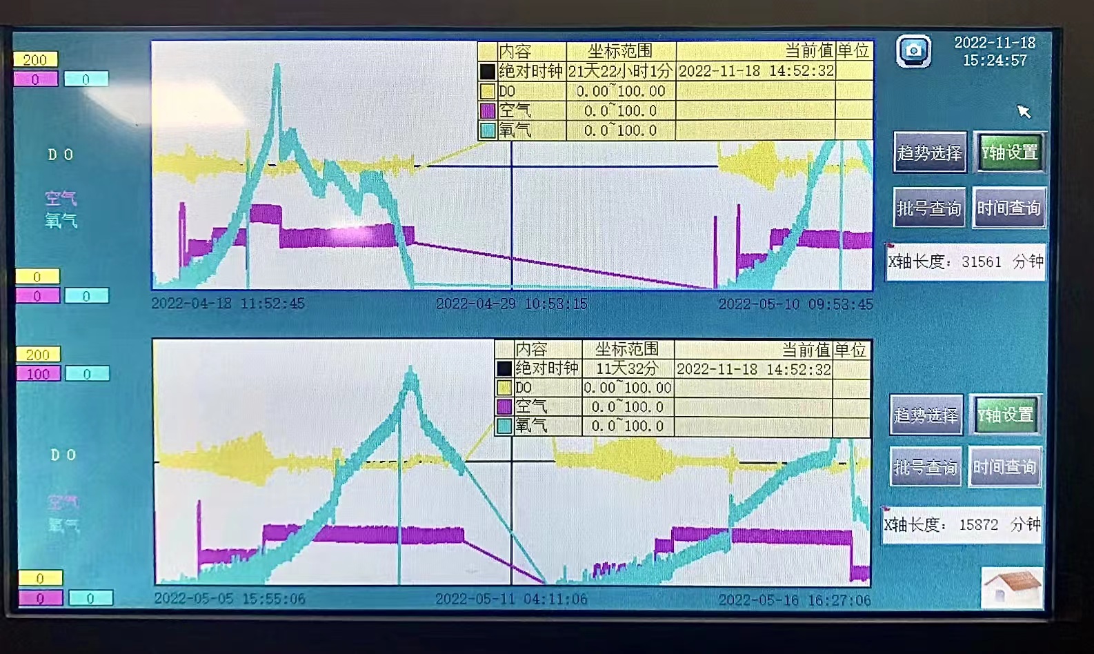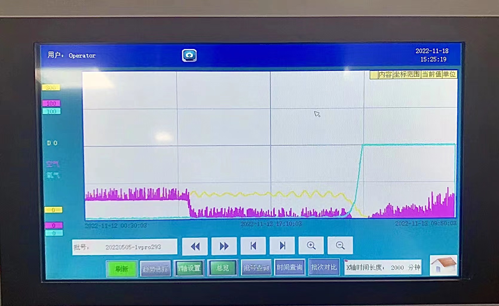 溶氧曲線可以進(jìn)行批次間對(duì)比,在生產(chǎn)的兩個(gè)批次之后,可以在設(shè)備的主機(jī)上將兩批的溶氧曲線調(diào)取出來進(jìn)行比對(duì),了解兩個(gè)批次之間的差異,以便改進(jìn)實(shí)驗(yàn)的數(shù)據(jù)和方向。