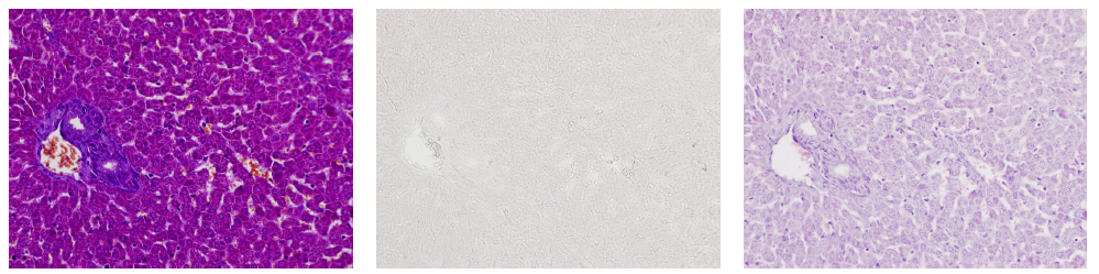 deColorizing Solution可以對HE染色后確認(rèn)了組織狀態(tài)(特定的結(jié)構(gòu)及細(xì)胞的存在)的切片脫色,再重新用于其他染色。該方法的特點在于可以對原本難以脫色的蘇木精、鐵蘇木精進(jìn)行脫色。