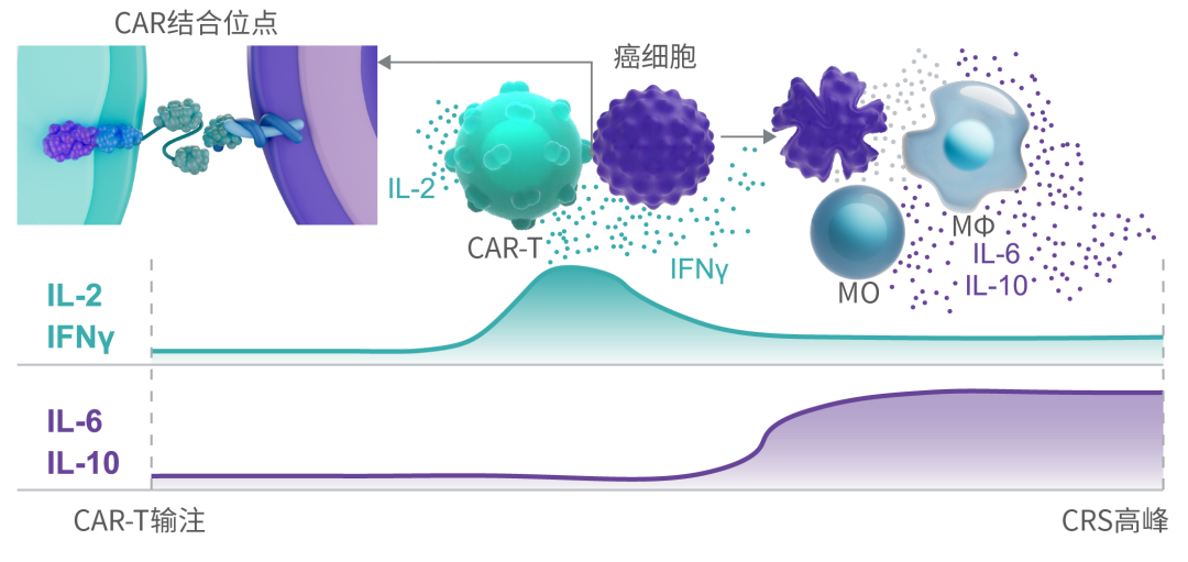 當CAR-T與癌細胞交互作用時,會釋放IFN-γ誘發(fā)炎癥反應、激活單核細胞與巨噬細胞。IFN-γ水平越高,炎癥反應越強烈。